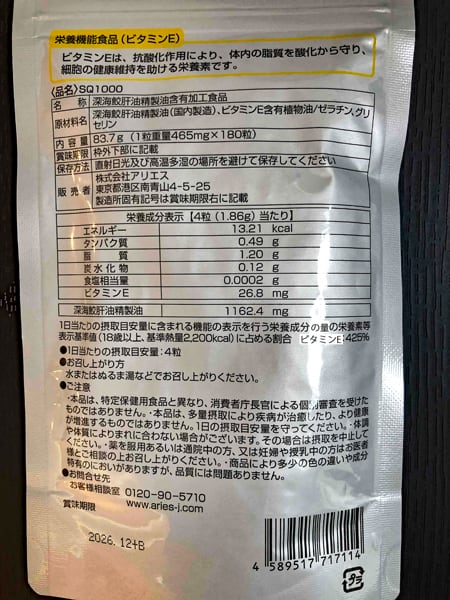 アリエス SQ1000 1粒重量465mg×180粒※軽減税率対象(深海鮫肝油精製脂含有加工食品)